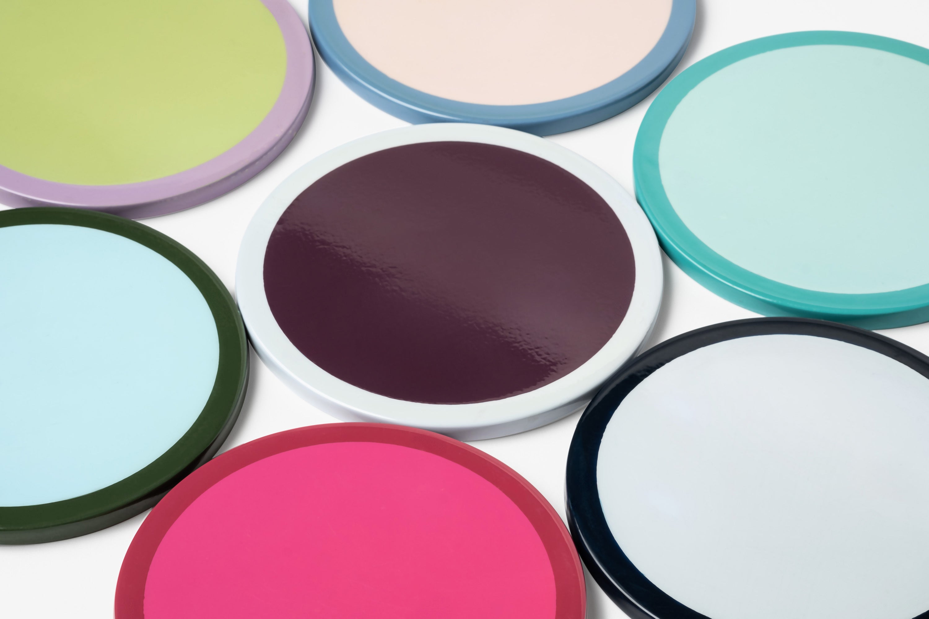 A refreshment for your coffee table. Bring a pop of color into your space with this essential entertaining accessory. These hand-lacquered coasters will elevate even the most simple moments with loved ones, friends and guests. Set of four.